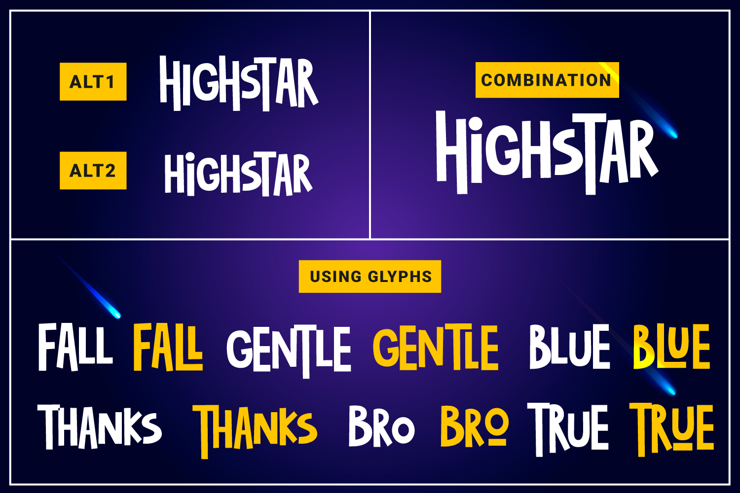 Whether you’re creating something futuristic, editorial, or rebellious, High Star makes every letter feel like a spotlight.